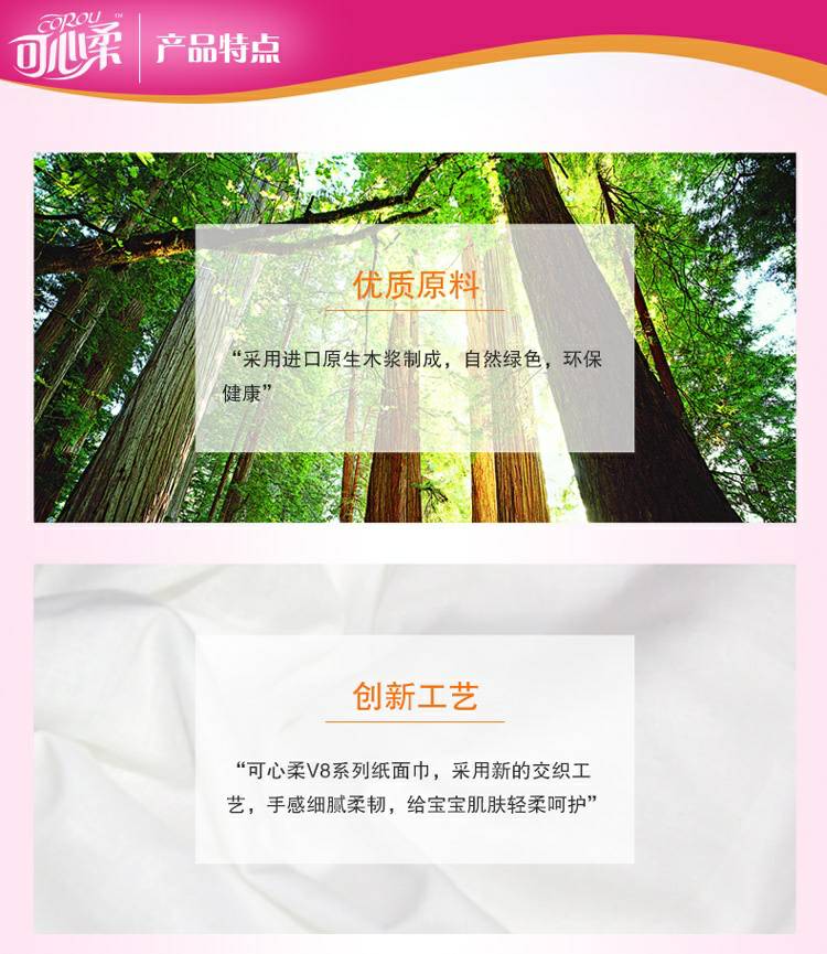 可心柔 V8系列CoRou云柔系列白色木浆60抽